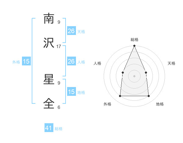 南沢 星全さんの総格は41画の5点!