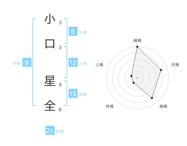 小口 星全さんの総格は21画の5点!