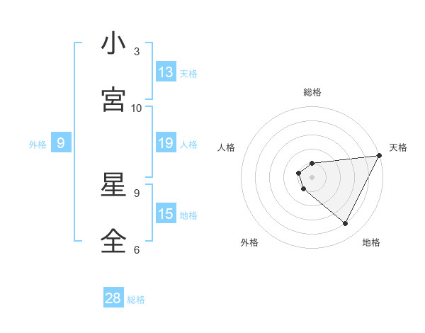 小宮 星全さんの天格は13画の5点!