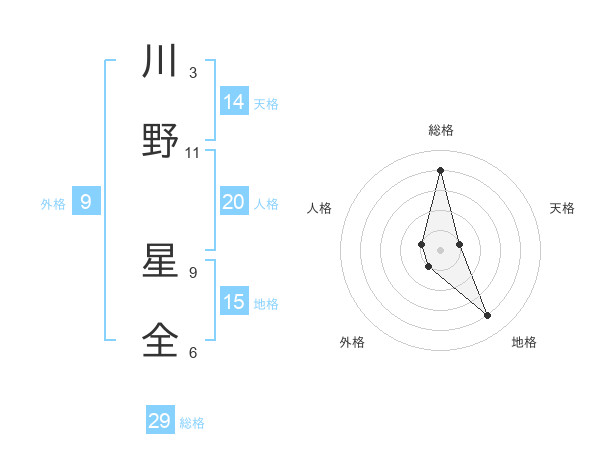 川野 星全さんの総格は29画の4点!