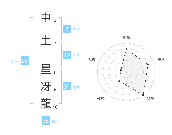 中土 星冴龍さんを姓名の画数から五運を鑑定