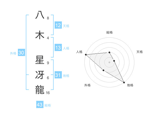 八木 星冴龍さんを姓名の画数から五運を鑑定