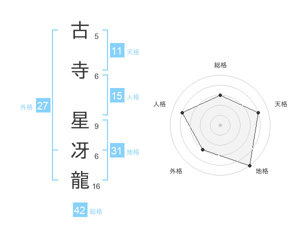 古寺 星冴龍さんを姓名の画数から五運を鑑定
