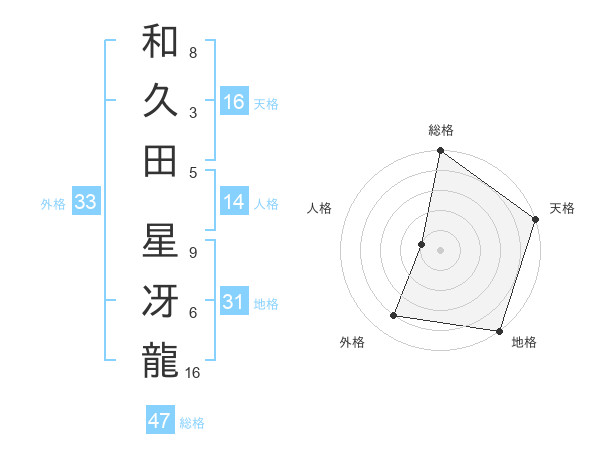 和久田 星冴龍さんを姓名の画数から五運を鑑定