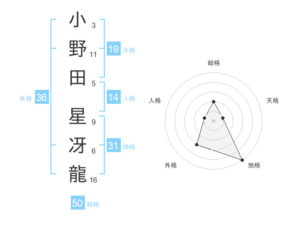 小野田 星冴龍さんの総格は50画の2点!