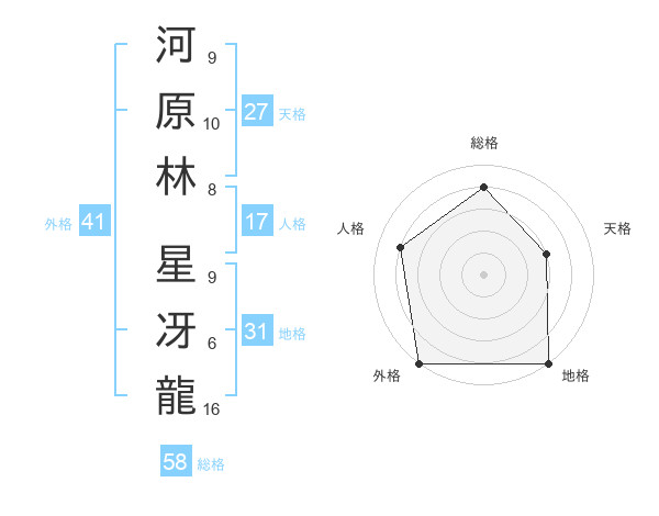 河原林 星冴龍さんを姓名の画数から五運を鑑定