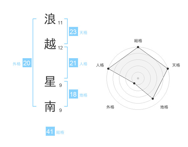 浪越 星南さんの天格は23画の5点!
