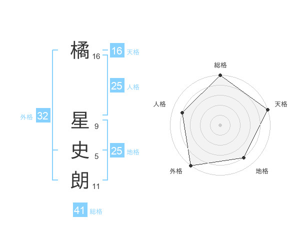 橘 星史朗さんの総格は41画の5点!
