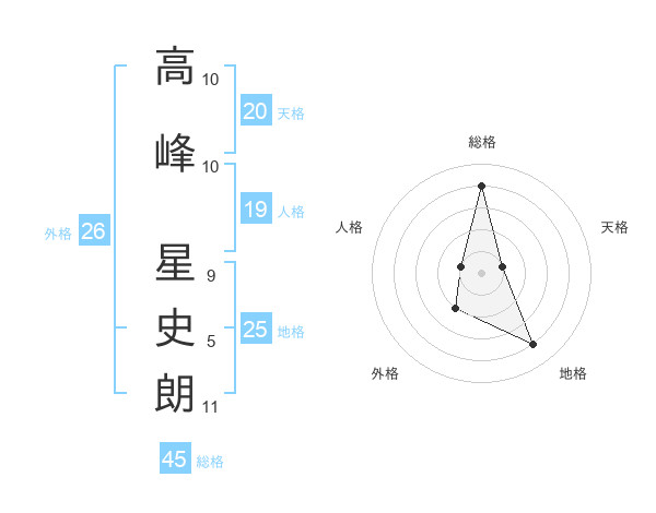 高峰 星史朗さんの総格は45画の4点!