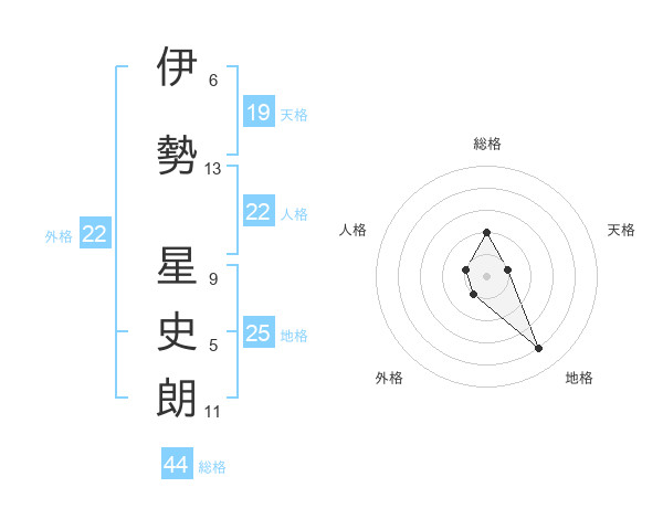 伊勢 星史朗さんの外格は22画の1点!