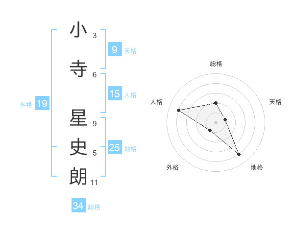 小寺 星史朗さんを姓名の画数から五運を鑑定