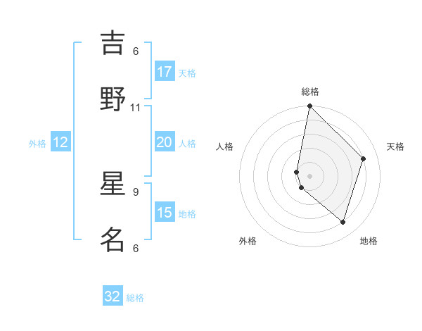 吉野 星名さんの天格は17画の4点!