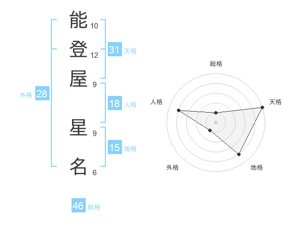 能登屋 星名さんを姓名の画数から五運を鑑定