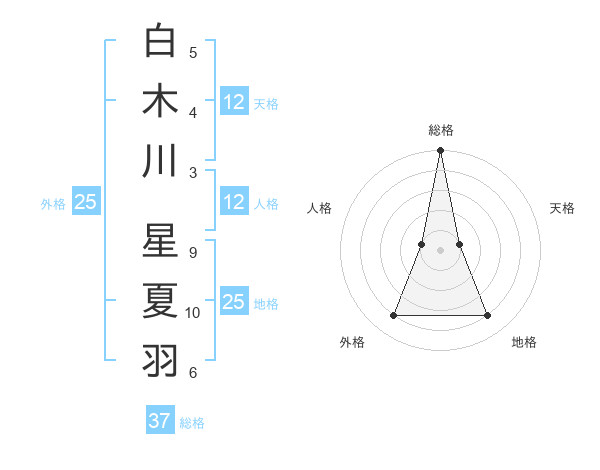 白木川 星夏羽さんを姓名の画数から五運を鑑定