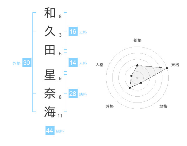 和久田 星奈海さんを姓名の画数から五運を鑑定