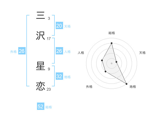 三沢 星恋さんを姓名の画数から五運を鑑定