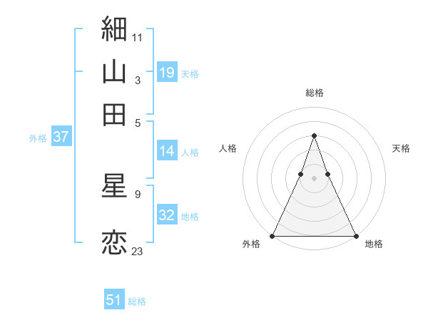 細山田 星恋さんを姓名の画数から五運を鑑定