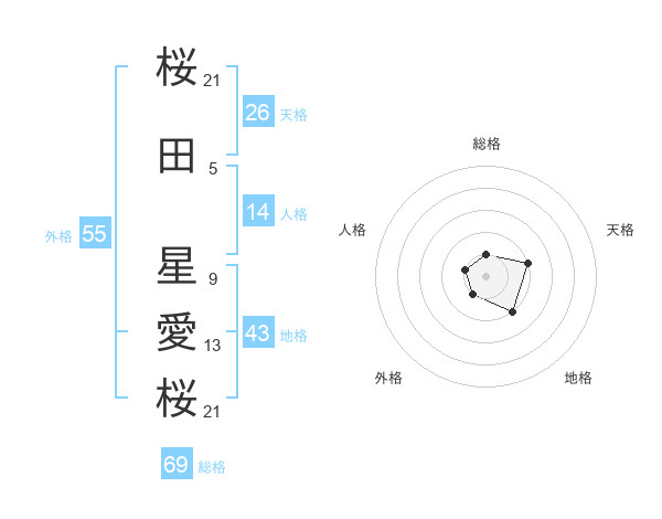 桜田 星愛桜さんを姓名の画数から五運を鑑定