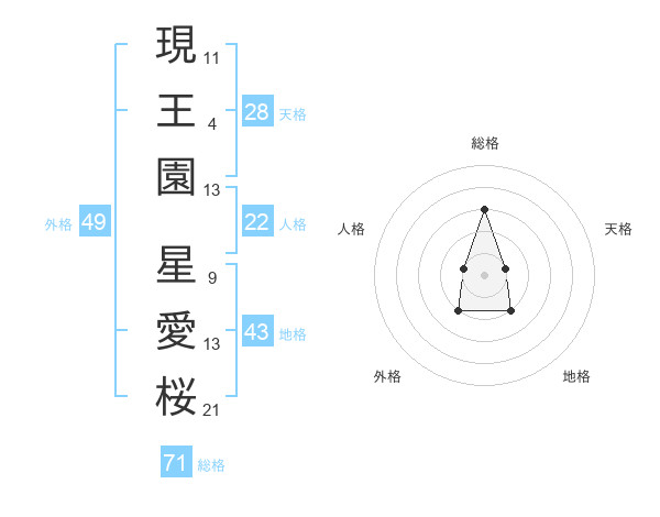 現王園 星愛桜さんを姓名の画数から五運を鑑定