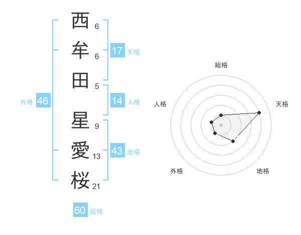 西牟田 星愛桜さんを姓名の画数から五運を鑑定
