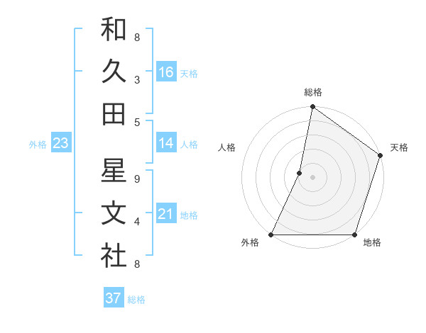 和久田 星文社さんを姓名の画数から五運を鑑定
