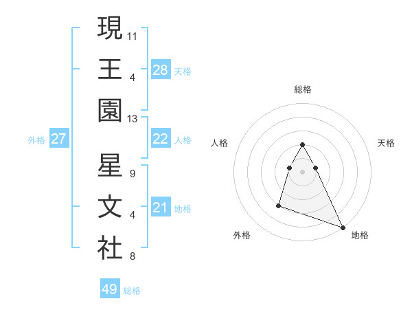 現王園 星文社さんを姓名の画数から五運を鑑定