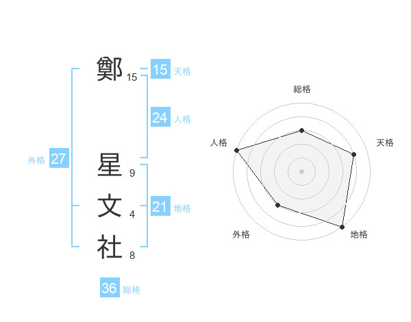 鄭 星文社さんを姓名の画数から五運を鑑定