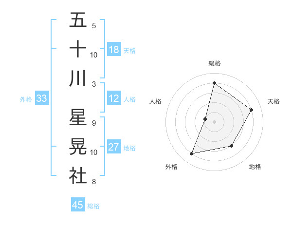 五十川 星晃社さんを姓名の画数から五運を鑑定