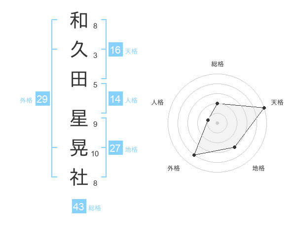 和久田 星晃社さんの天格は16画の5点!