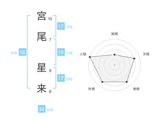 宮尾 星来さんの天格は17画の4点!