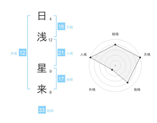 日浅 星来さんの天格は16画の5点!