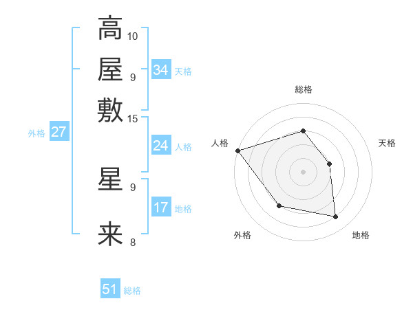 高屋敷 星来さんを姓名の画数から五運を鑑定