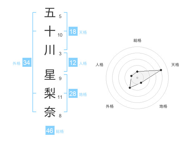 五十川 星梨奈さんを姓名の画数から五運を鑑定