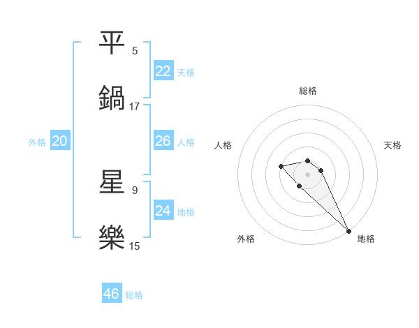 平鍋 星樂さんの総格は46画の1点!