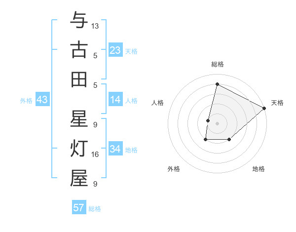 与古田 星灯屋さんを姓名の画数から五運を鑑定