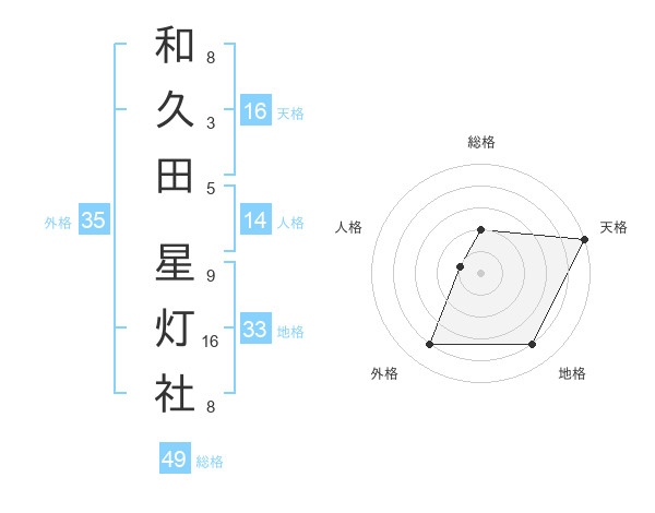 和久田 星灯社さんの総格は49画の2点!
