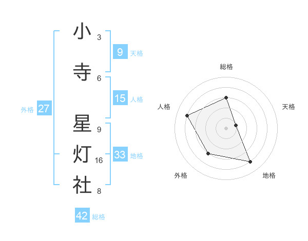 小寺 星灯社さんを姓名の画数から五運を鑑定