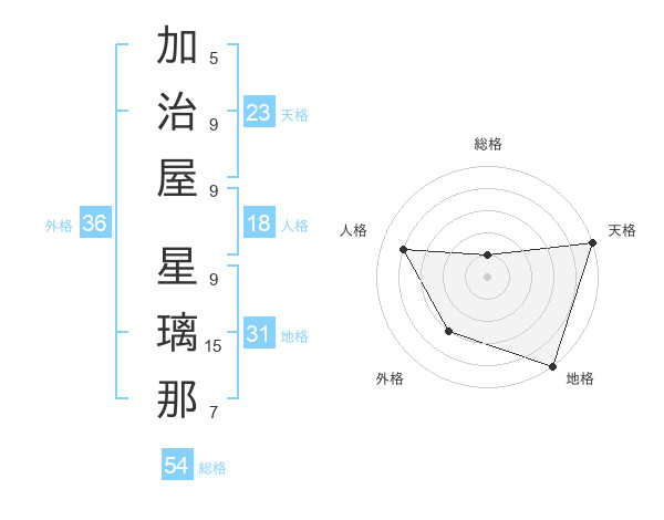加治屋 星璃那さんの外格は36画の3点