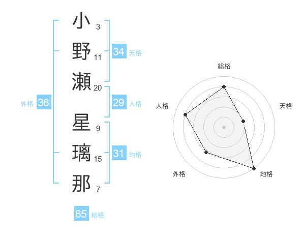 小野瀬 星璃那さんを姓名の画数から五運を鑑定