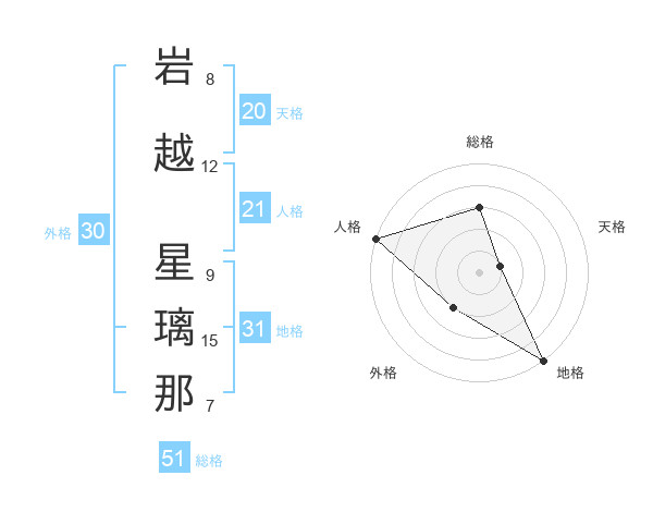 岩越 星璃那さんを姓名の画数から五運を鑑定