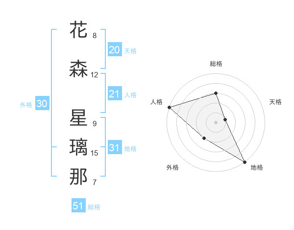 花森 星璃那さんを姓名の画数から五運を鑑定