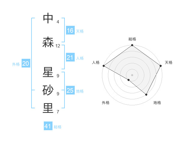 中森 星砂里さんの総格は41画の5点!