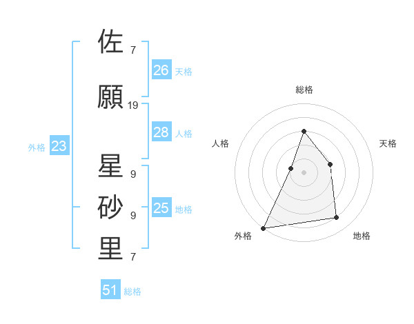 佐願 星砂里さんの外格は23画の5点!