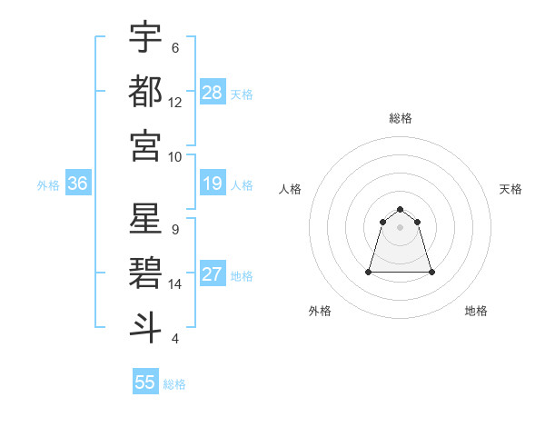 宇都宮 星碧斗さんを姓名の画数から五運を鑑定