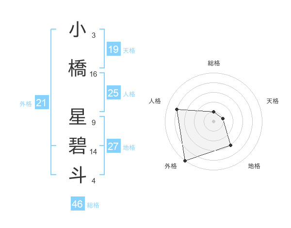 小橋 星碧斗さんを姓名の画数から五運を鑑定
