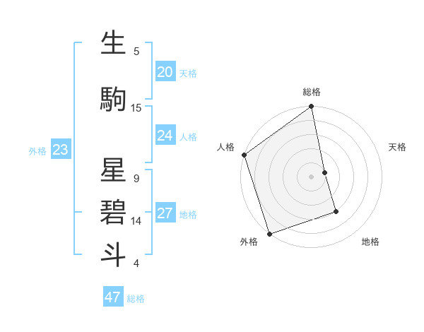 生駒 星碧斗さんを姓名の画数から五運を鑑定