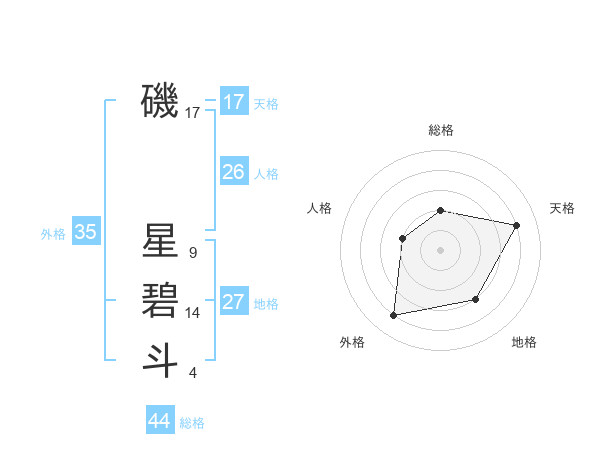 磯 星碧斗さんを姓名の画数から五運を鑑定
