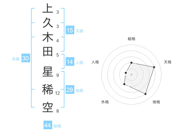 上久木田 星稀空さんを姓名の画数から五運を鑑定