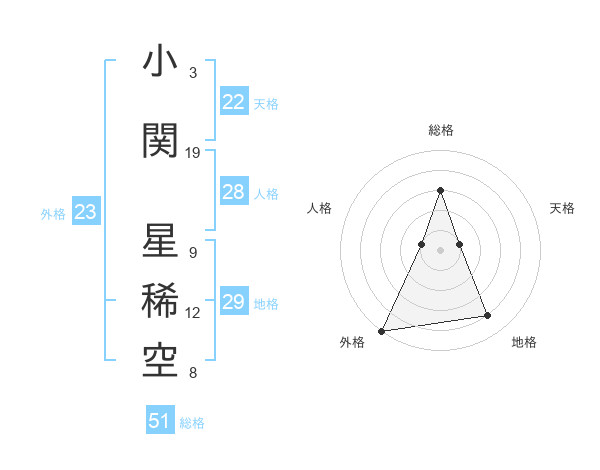 小関 星稀空さんの総格は51画の3点