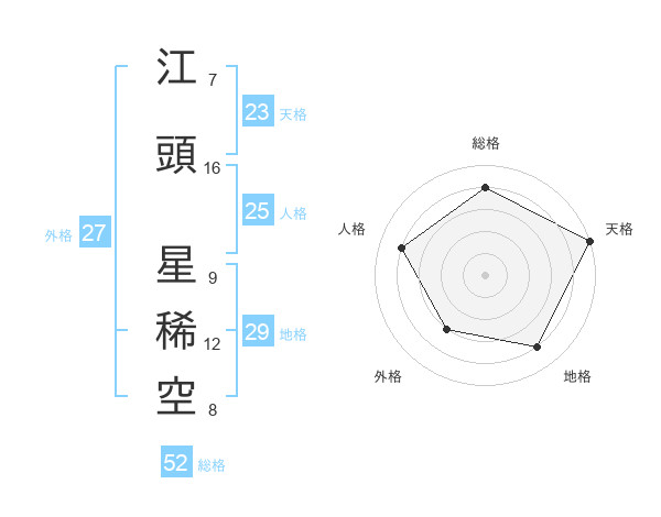江頭 星稀空さんを姓名の画数から五運を鑑定